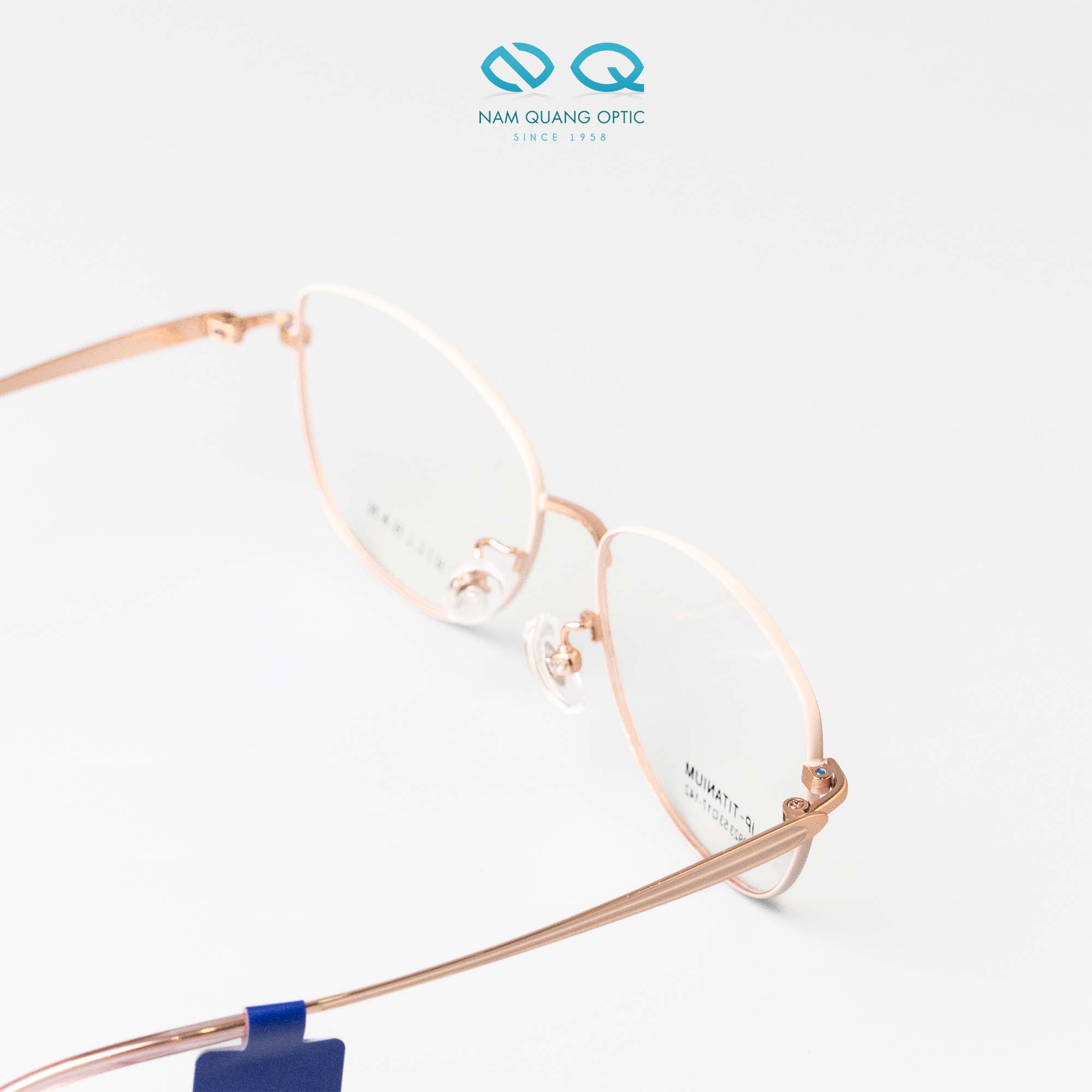 Phần gọng được làm từ titanium, chất liệu được ưa chuộng nhờ ưu điểm nhẹ, bền, chống oxy hóa tốt và tạo cảm giác đeo dễ chịu trong thời gian dài. Với những ai thường xuyên đeo kính cả ngày, chất liệu này giúp giảm áp lực lên sống mũi và vành tai, đồng thời giữ form kính ổn định trong quá trình sử dụng.