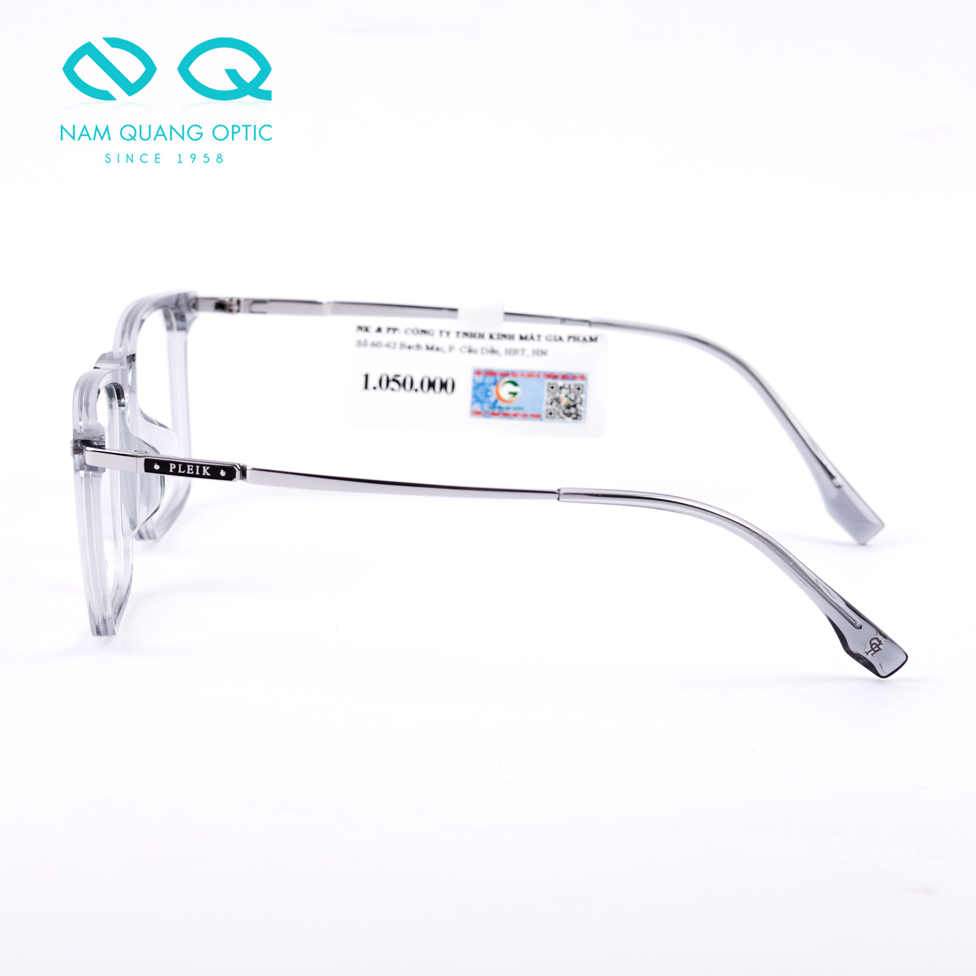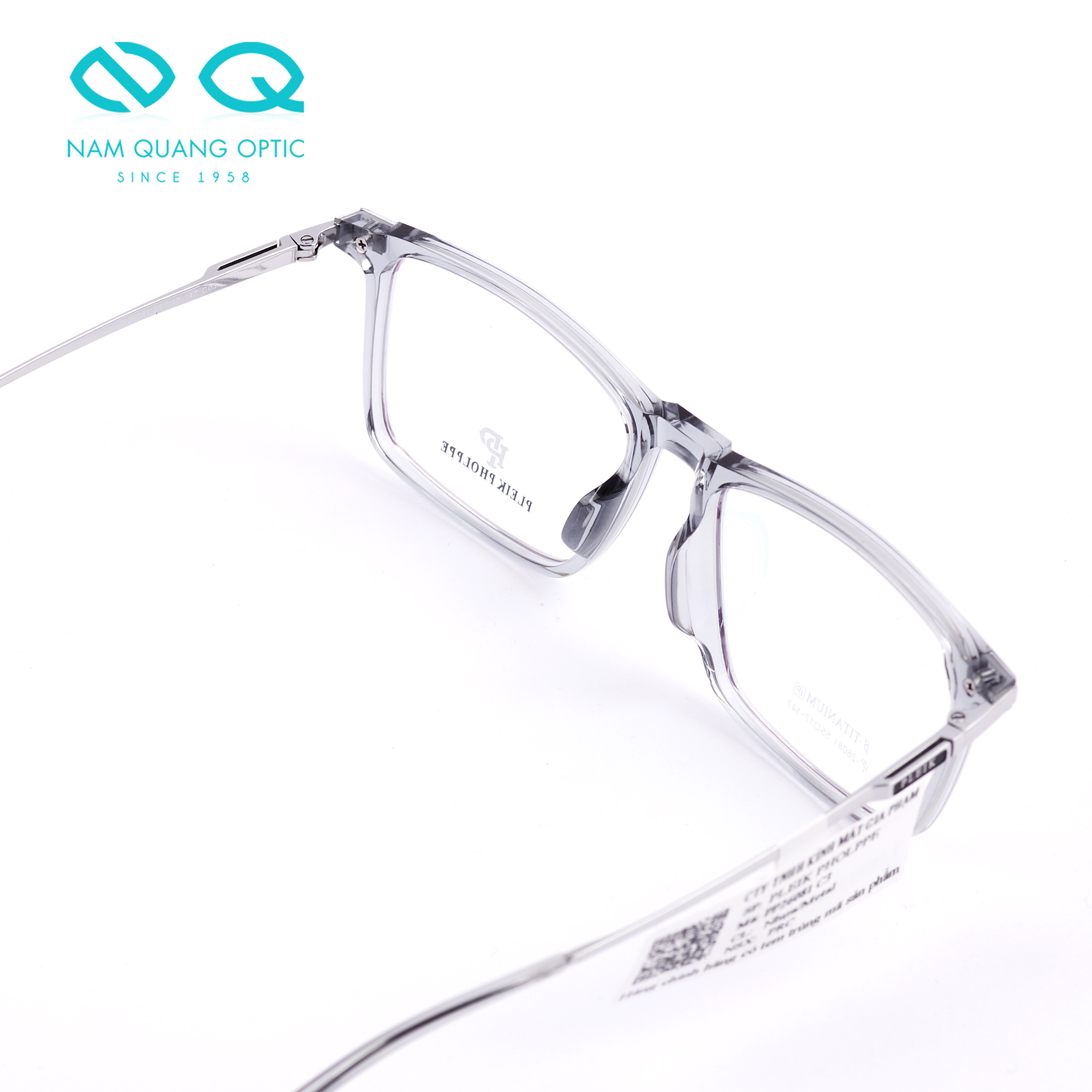 Kết hợp giữa thời trang và chức năng với các đường nét rõ ràng, các chi tiết tỉ mỉ và trọng lượng nhẹ thoải mái, gọng kính hình chữ nhật góc cạnh này là một lựa chọn tuyệt vời cho kính đeo hàng ngày. Phiên bản màu xám clear có mặt trước càng Titanium màu bạc. Miếng đệm mũi cố định trên khung thích hợp với những ai mũi cao.