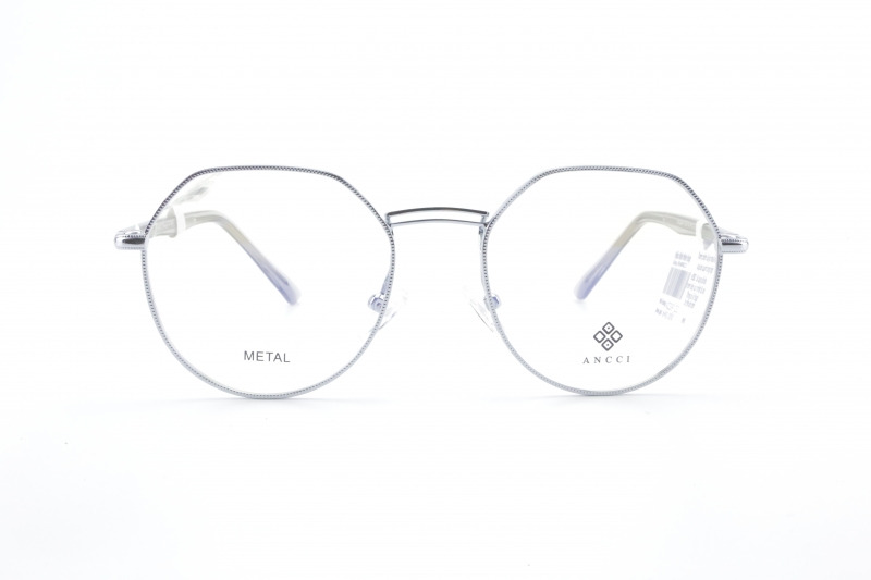 Mẫu gọng kính kim loại Ancci màu bạc tôn da và sáng bóng sang trọng