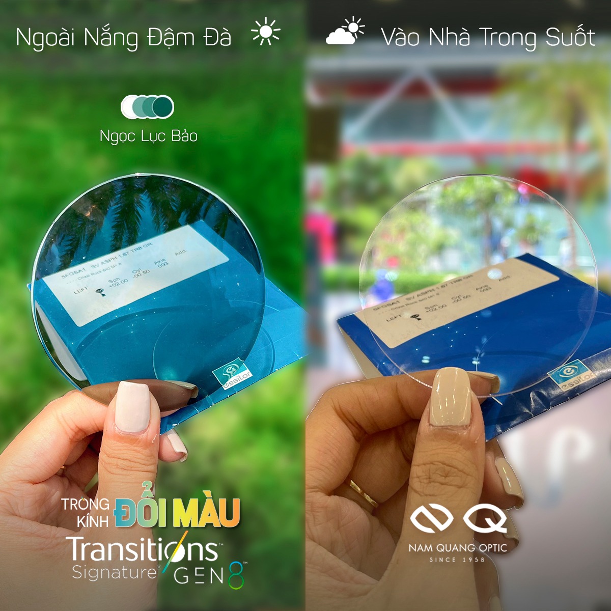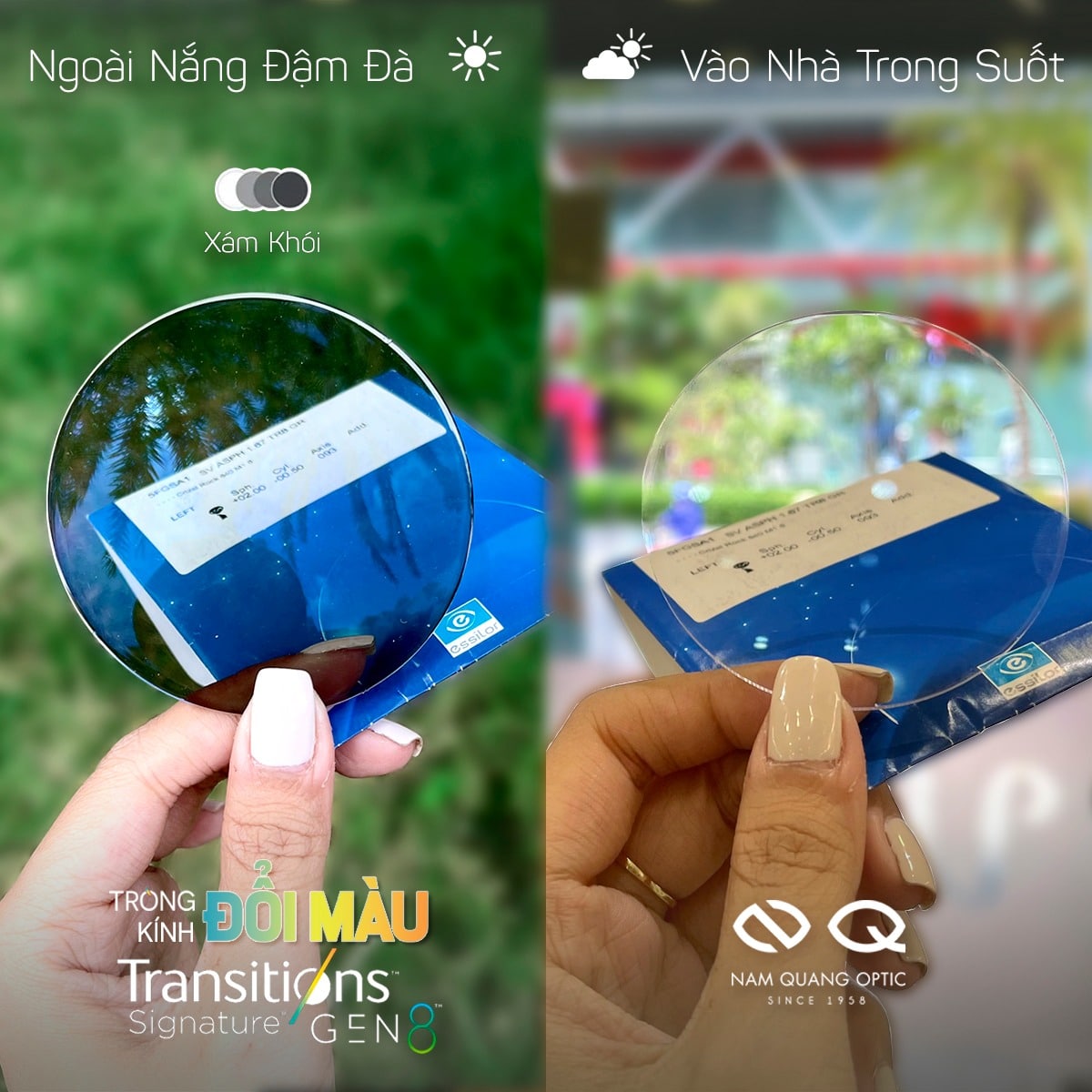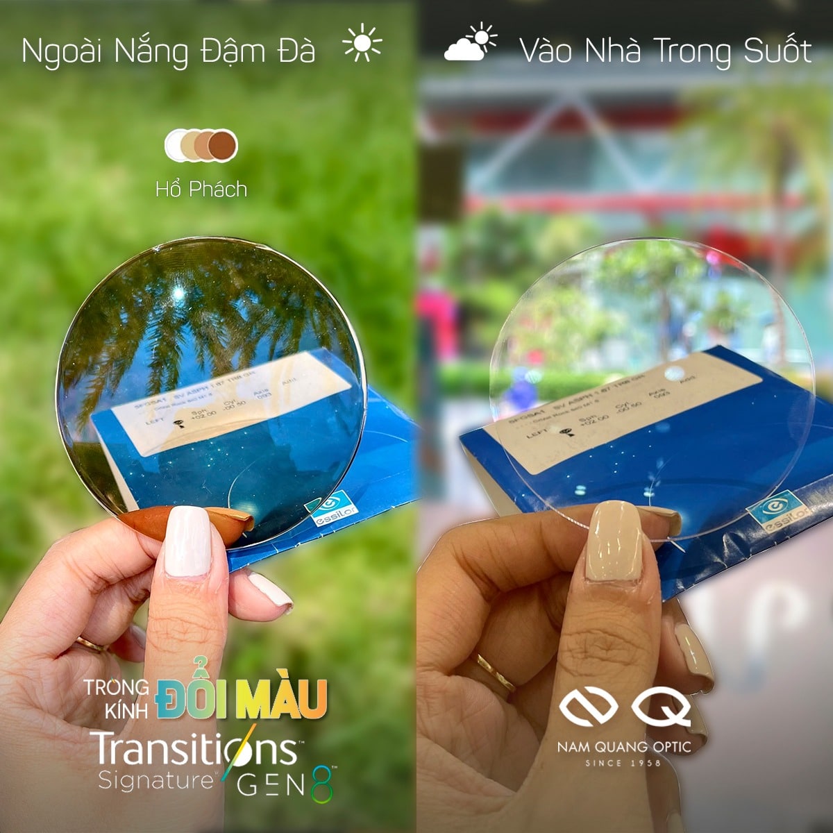 - Đổi màu thời trang khi ra nắng và trong suốt khi vào trong nhà với 5 màu tùy chọn
