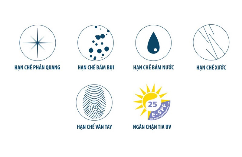 - Chống tia UV từ mặt trước và mặt sau tròng với chỉ số E-SPF25